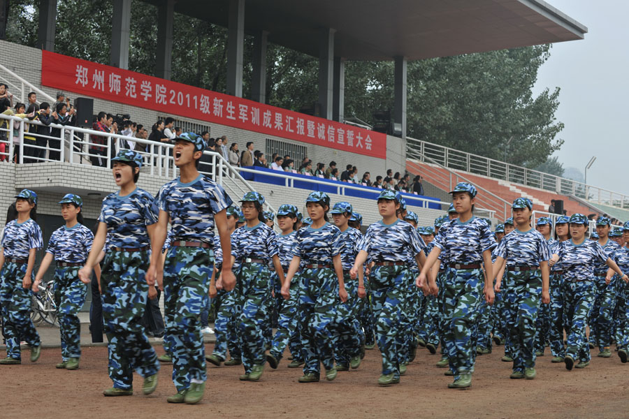 9月29日上午,我系2011级新生在郑州师范学院2011级新生军训会操大会上获得校一等奖第一名。军训汇演由校党委副书记、副校长樊豫陇主持,院长赵健检阅。