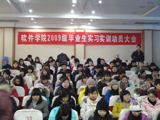本次实习动员会使学生明确了实习的重要意义、实习的安排和实习的具体任务。2009级学生的实习实训是软件学院第一届毕业生的重要教学环节,走出了软件学院发展的重要一步,将为以后的实习实训积累宝贵的经验。