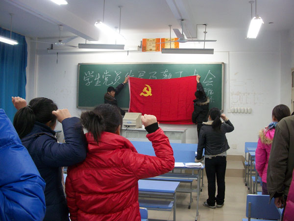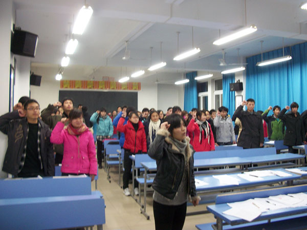 2010年12月24日晚上六点半,软件学院信息技术系党员转正大会在五号楼5302教室举行,软件学院信息技术系团总支书记郝伟旭老师,2010级辅导员吕国宁老师,部分正式党员和入党发展对象参加了此次会议。
