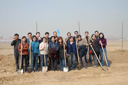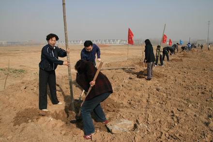 2009年3月17日,我系07、08级学生代表在系党总支书记姜平、团总支书记郝伟旭、辅导员荆运霞等老师的带领下前往东校区参加植树活动。