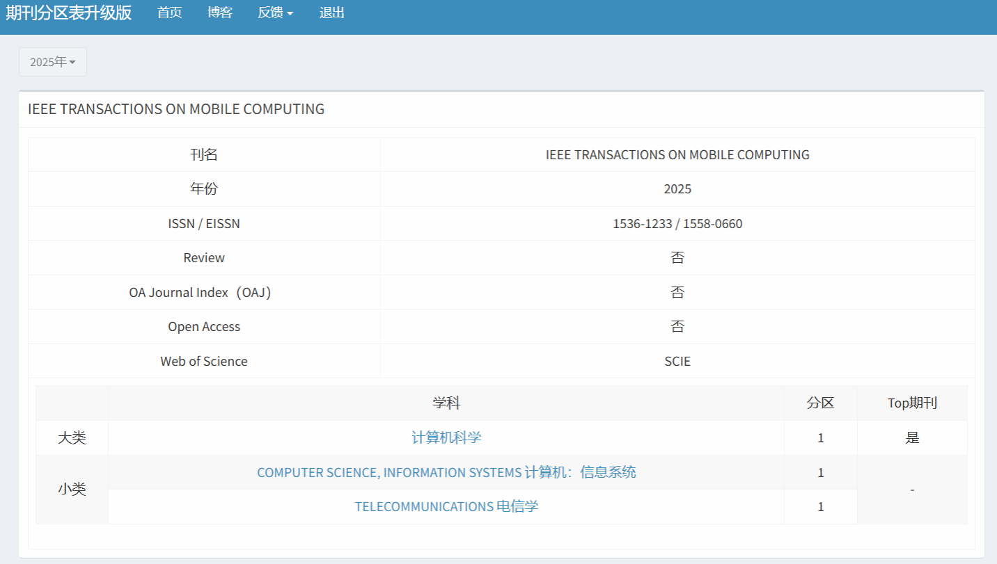 IEEE TMC是中国计算机学会(CCF)推荐的A类顶级国际期刊、中科院1区TOP期刊,2025年影响因子9.2,是中国计算机学会所推荐的计算机网络领域三个A类期刊之一,在网络通信领域有着重大影响力。