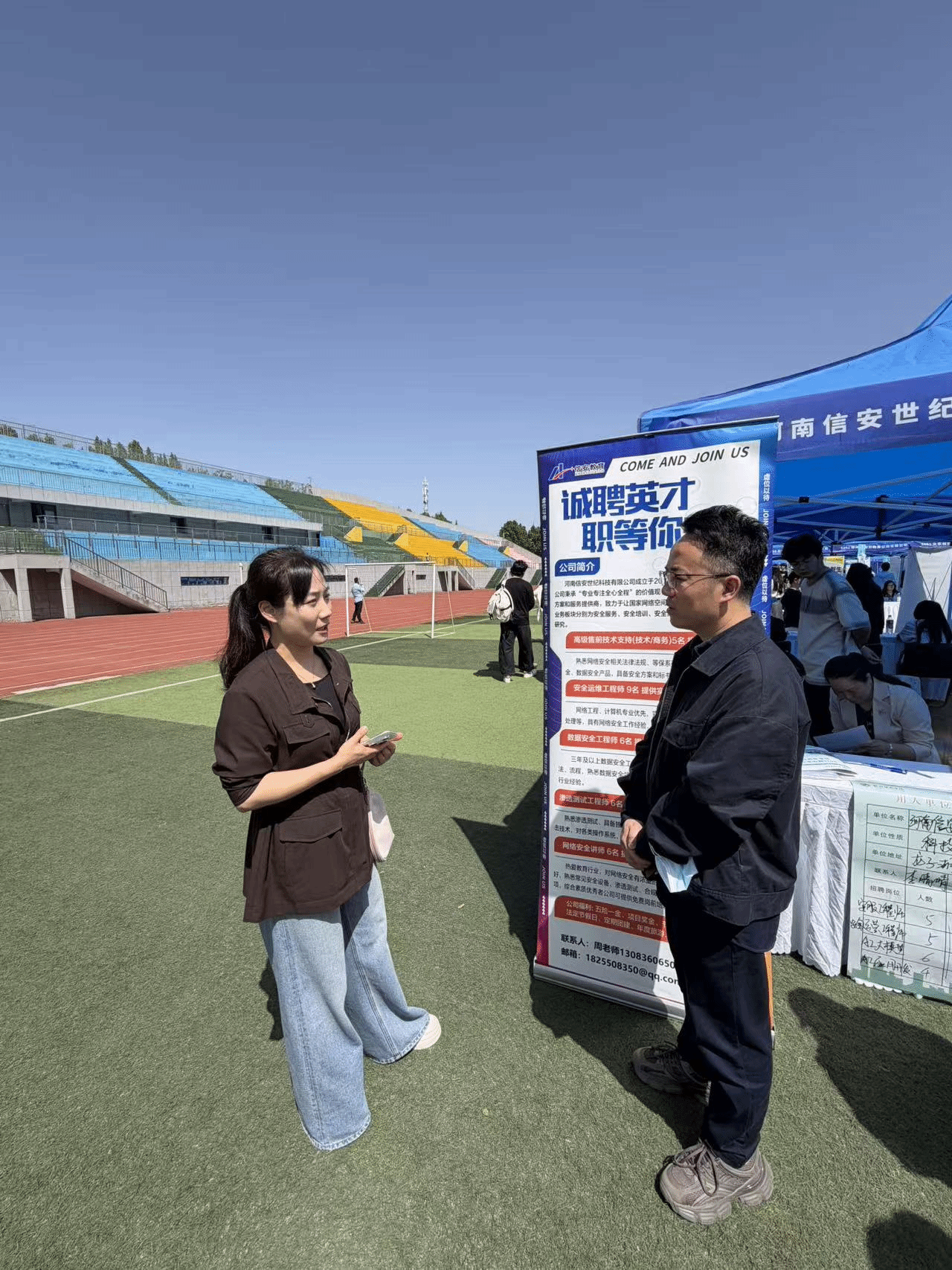 为进一步拓宽毕业生就业渠道,提供更多专业对口的优质岗位,学院提前谋划、主动对接,邀请河南信安世纪科技有限公司、河南速兴科技有限公司、中科(郑州)视觉科技有限公司等7家信息技术领域优质企业入驻双选会现场。参会企业提供网络安全工程师、机器视觉算法工程师、软件开发工程师、数据分析师等多个技术类岗位,与学院软件工程、计算机科学与技术、信息安全、数字媒体技术等专业高度契合,有效实现了岗位需求与人才培养的精准匹配,为学院毕业生搭建了优质高效的求职交流平台。