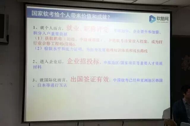 这次关于软考的讲座让同学们进一步了解了关于软考的步骤和具体报考的时间和内容,让同学们知道了软考的重要性。就像马老师所说:软考证书是你工作自信的重要砝码。