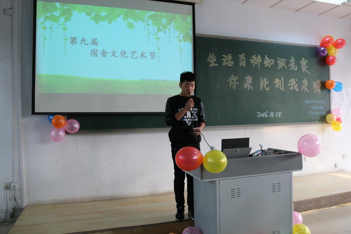 2016年11月15日,信息科学与技术学院、电子商务学院举办的第九届宿舍文化艺术节在四阶三圆满结束,出席此次活动的有学生会主席郑浩然,副主席亢艺琳、陈正一及学生会各部部长。