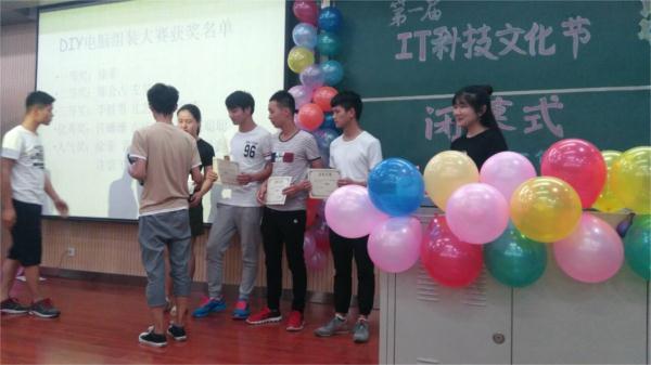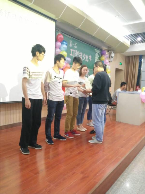 活动开始,主持人介绍参加此次活动的各位来宾,信息科学与技术学院社团联合会的主席陈梦宣布颁奖典礼开始。颁奖典礼共有五项表彰,分别是网页设计大赛表彰、班级Logo设计大赛表彰、DIY组装大赛表彰、信息技术服务活动表彰、软件创意设计大赛表彰。团总支书记、社团联合会主席、学生会主席、青年志愿者协会会长等分别为获奖代表颁发了奖状。颁奖典礼中穿插的相声、微博抽奖等活动,为整场活动增添了色彩。最后由余老师作总结发言,他指出第一届IT科技文化节旨在提高学生的计算机技能和科学素养,培养学生计算机专业兴趣,营造良好的文化氛围,今后会总结经验,将其做大做强。