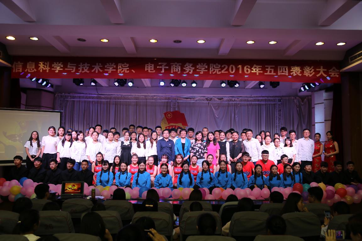 2016年5月20日下午18:00,信息科学与技术学院、电子商务学院2016年五四表彰大会在西校区六号报告厅成功举行。莅临此次大会的领导和老师有信息科学与技术学院院长胡明生,党总支副书记古明惠、副院长李正超、各系主任、团总支书记、辅导员、任课教师,获得表彰的学生代表、在校学生代表参加了此次大会。