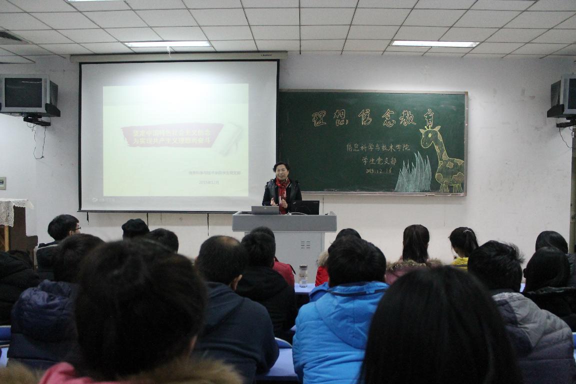 2015年12月16日晚上18:00,信息科学与技术学院学生党支部在西校区一号楼一阶三开展了学生党员理想信念教育活动。信息科学与技术学院党总支书记姜平、学生党支部书记余奇明以及学院全体学生党员参加了此次活动。