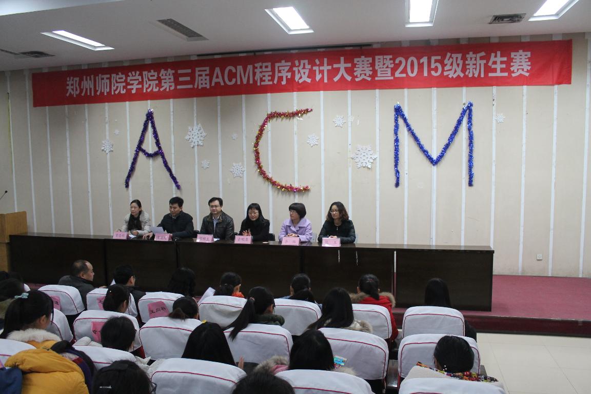 12月12日,由郑州师范学院教务处主办,信息科学与技术学院承办的郑州师范学院第三届ACM程序设计大赛暨2015级新生赛在1号楼举行。共290名新生参加此次比赛,除了来自我校2015级230名新生外,还有来自河南工业大学、郑州轻工业学院等省内兄弟院校的60余新生前来切磋交流。本次新生赛旨在为ACM集训队选拔新鲜的ACMer,激发同学们对计算机编程的热爱。