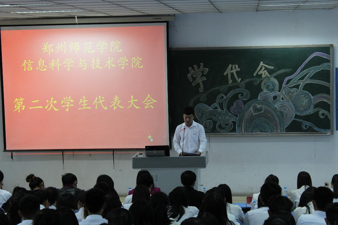 2015年10月27日,信息科学与技术学院第二次学生代表大会在西校区一号楼一阶三隆重举行。信息科学与技术学院党总支副书记古明惠、、团总支副书记余奇明、校团委老师崔璨、校学生会主席潘飞、副主席裴冬慧、信息科学与技术学院学生会主席马昕,副主席王淼以及信息科学与技术学院学生会干部、各班代表参加了此次大会。