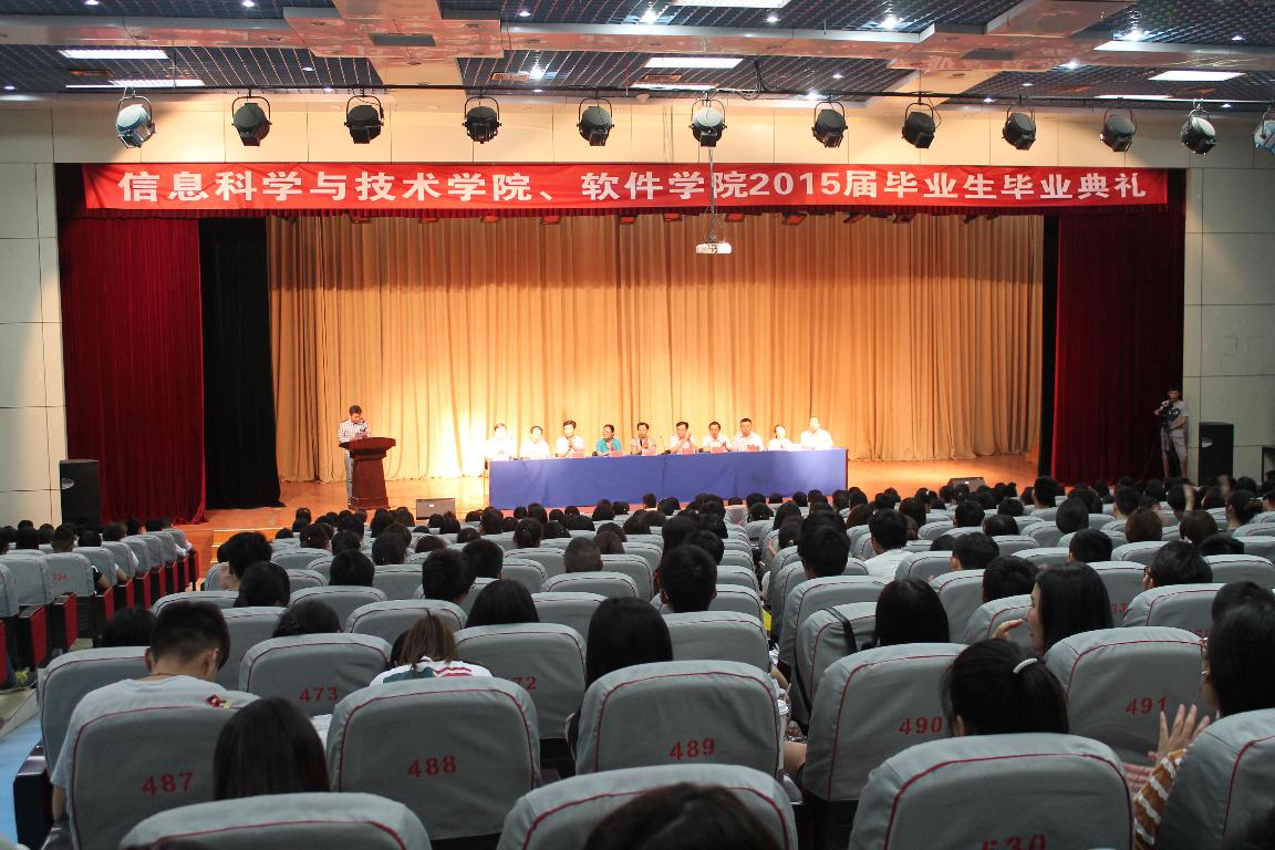 2015年6月10日下午,我院在西校区七号楼报告厅举行了2015届毕业生毕业典礼。院党总支书记姜平、院长胡明生、党总支副书记古明惠、副院长肖汉以及办公室主任、各系主任、团总支书记、辅导员、德育导师、任课教师出席典礼。团总支副书记余奇明主持典礼,500余名学子齐聚一堂,共同见证了人生中这一重要的时刻。。