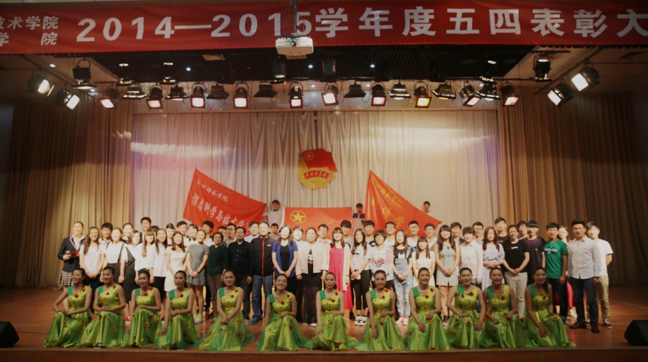 艺术团带来的极具青春活力的舞蹈拉开大会帷幕。团总支副书记余奇明宣读《信息科学与技术学院2014—2015学年度五四表彰大会决定》,对优秀团干、优秀团员、优秀团支部,文明值岗优秀志愿者、运动会、市级三好学生等进行了表彰,并对获奖代表进行了颁奖。14级马昕同学作为优秀团员代表进行了发言,诗朗诵《我骄傲 我是中国人》将大会气氛推向高潮。