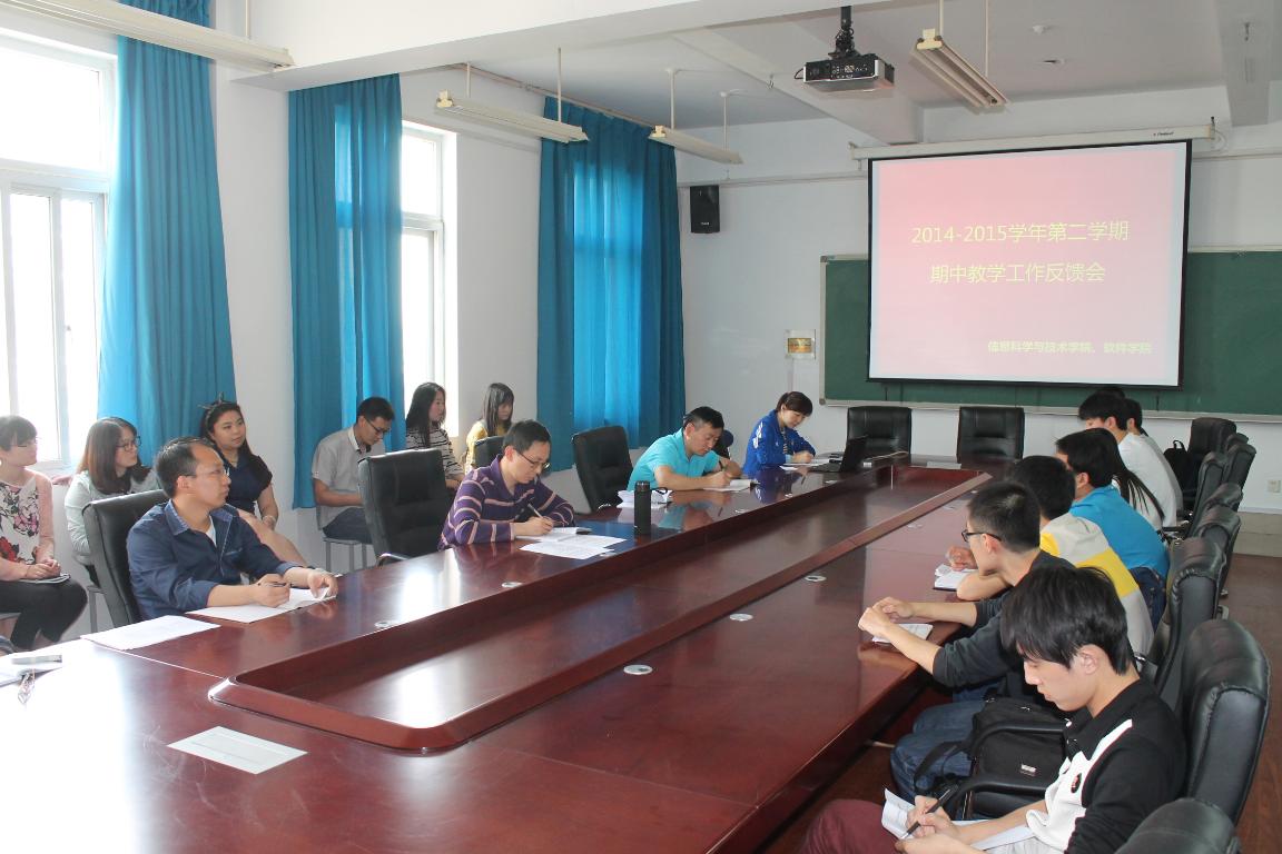 根据2015年4月20日郑州师范学院期中教学工作会议精神,我院每学期一次的期中教学工作反馈会于5月5日下午召开。我院肖汉副院长、各系(教研室)主任、教学秘书、团总支书记、全体辅导员及各班学生代表参加了此次会议。
