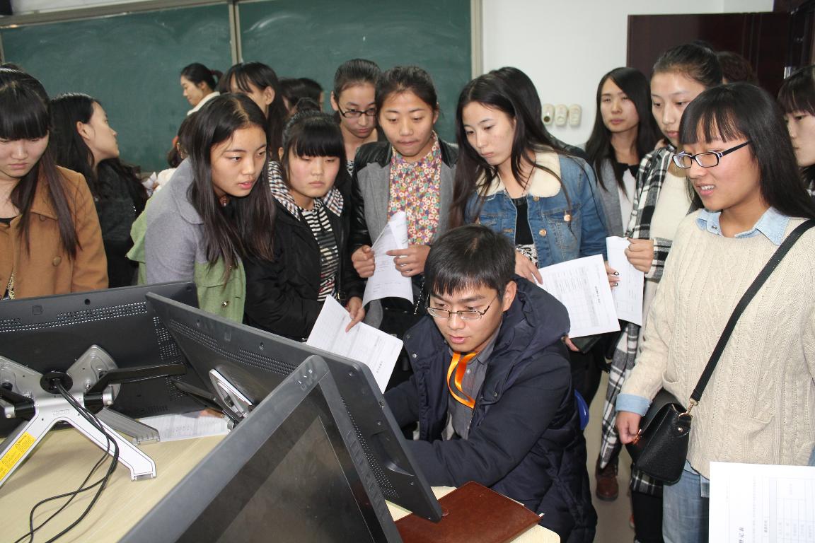 11月19日下午一点半,25人在数字媒体系系主任王永刚的带领下,一同前往位于郑州西开发区的威科姆科技公司总部。公司首先安排对其产品和环境进行参观,通过近距离接触进一步认识威科姆。复试开始后,公司对学生进行分批面试,通过作品查看和一对一的面谈,复试人员的范围再次缩小到12人(Flash动画9人,教育技术3人),进入第三轮专场测试。11月20日下午两点,威科姆公司特派的专业人员来到我校,对进入三试的Flash动画9人进行现场出题考核,学生们认真面对,经过两个小时的紧张制作,学生们完成了他们人生当中第一个应聘测试。最终结果要等到公司商定后决定通知。