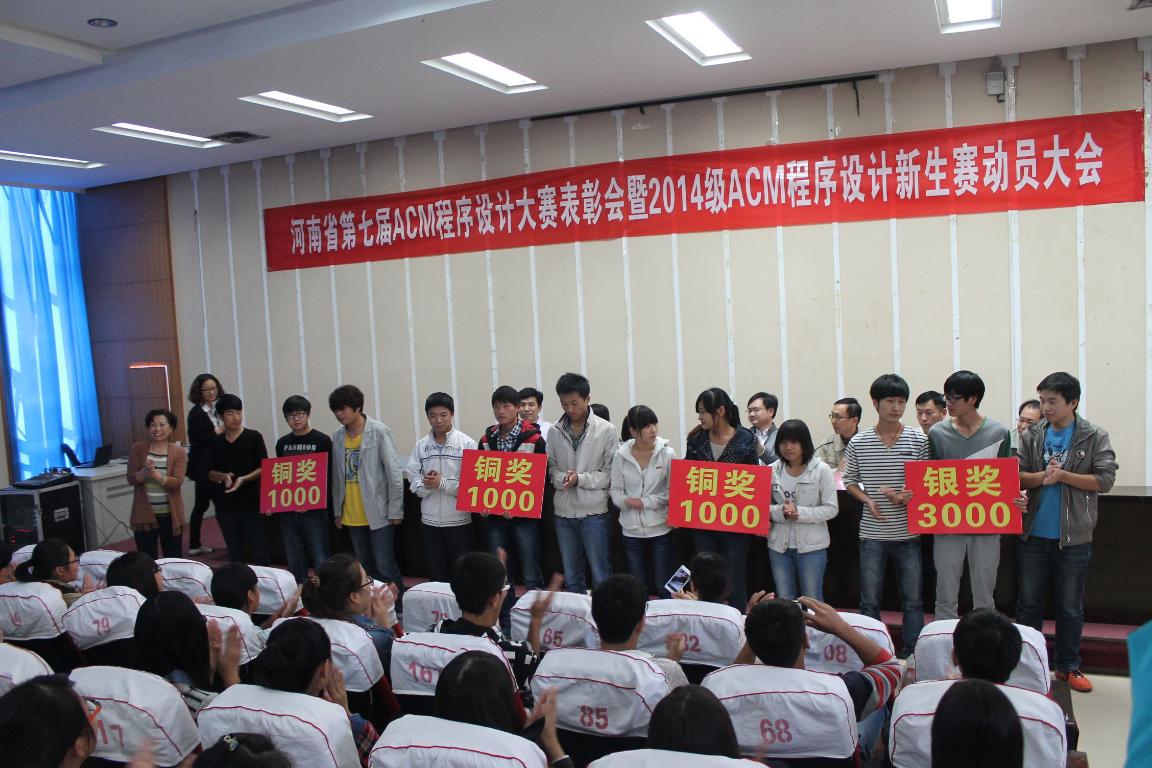 随后,古书记宣读ACM获奖学生名单,姜书记为获奖学生颁奖。最后由张玉老师为新生介绍ACM程序设计大赛的详细情况,鼓励大家积极加入,同学们也深受鼓舞,会后纷纷报名,此次动员大会收到了良好的效果。