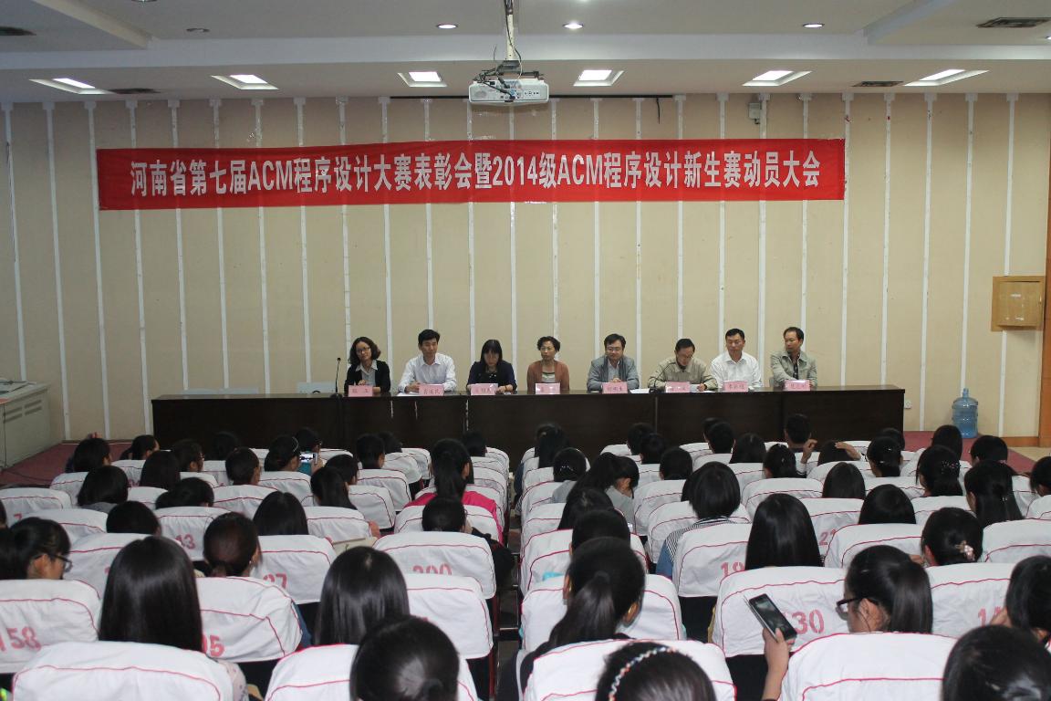 首先,胡院长发表致辞。他向大家介绍我院学生代表我校参加2014年河南省第七届ACM程序设计大赛的获奖情况,为我校在河南赛区30多所本科院校中获得一枚银奖、三枚铜奖的优秀成绩感到骄傲与自豪,同时为获奖的同学们表示衷心的祝贺;随后他希望大一新生能够做好自己大学四年的学业规划,“一滴汗水,一份收获”勉励大家珍惜大学的美好时光。