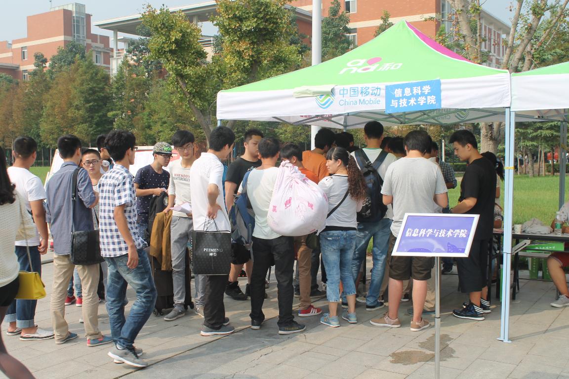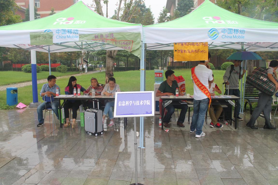 9月1日、2日,信息科学与技术学院、软件学院2014级迎新工作在图书馆前火热进行,900余名学子进入我院,掀开人生新的篇章。学院党政领导高度重视,团总支召开了专门的迎新工作会议,制定了《信息科学与技术学院、软件学院2014级迎新工作方案》,对参加迎新工作人员明确分工,提出具体要求,确保为期两天的迎新工作顺利完成。