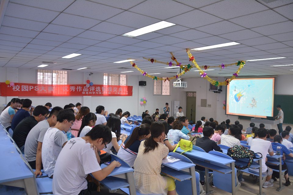 6月4日晚上,由计算机协会举办的“校园ps大赛优秀作品评选暨颁奖典礼”在一阶三教室隆重举行。信息科学与技术学院团总支副书记余奇明,软件工程系主任楚志刚,数字媒体系主任王永刚以及赵少峰老师、宗书召老师、计算机协会指导老师吕国宁老师担当评委和颁奖嘉宾。