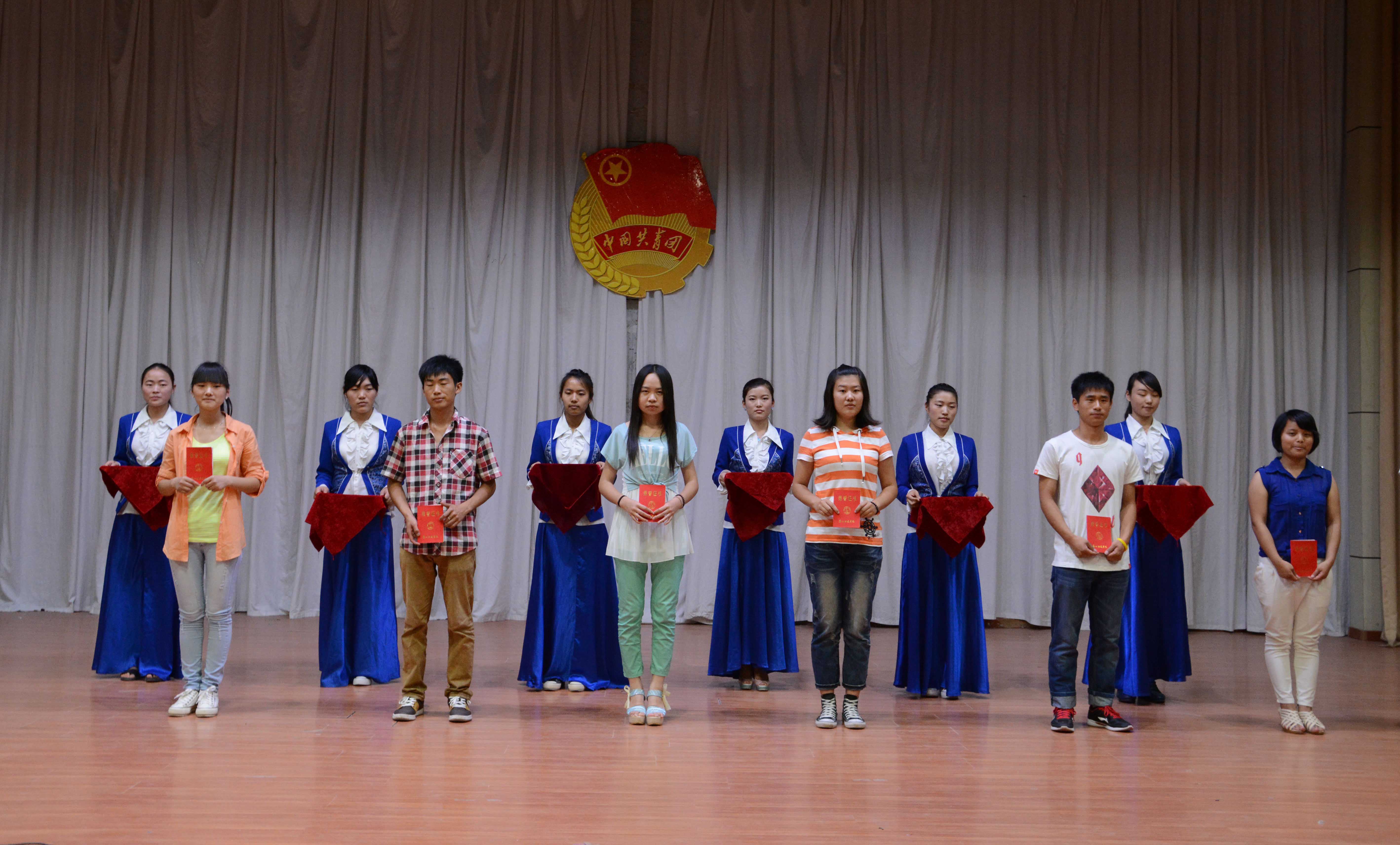 大会在庄严的国歌声中拉开帷幕,团总支书记郝伟旭宣读了《信息科学与技术学院、软件学院2013-2014学年度五四表彰决定》,对73名优秀团干、101名优秀团员、省市级三好学生、优秀干部、优秀干事以及参加学科竞赛获奖学生、四六级通过学生等进行了表彰。13级现代教育技术专业张琳琦同学作为优秀团干代表进行了发言。院党总支书记姜平、院长胡明生、副院长肖汉、办公室主任勾占锋分别为获奖代表进行了颁奖。