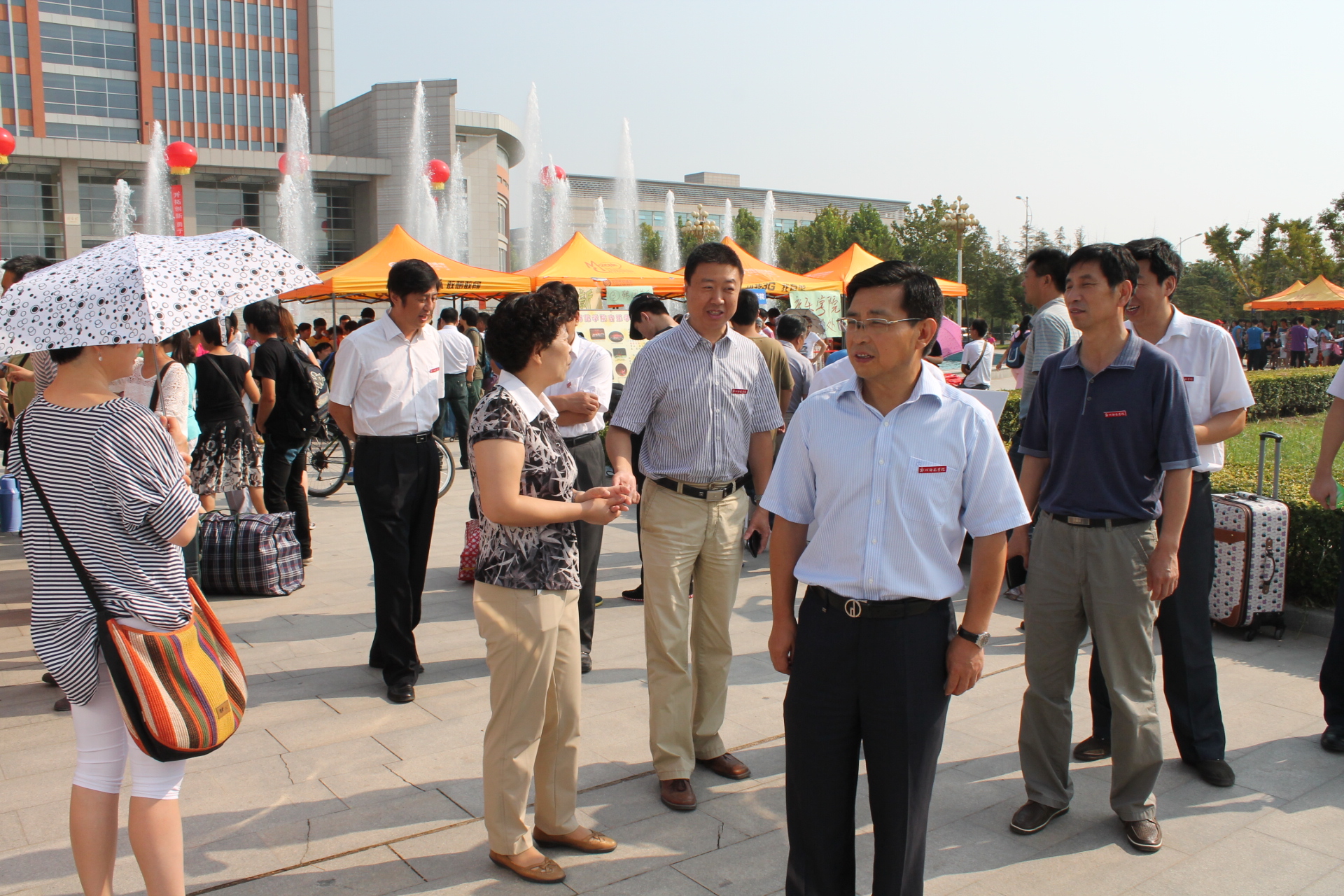31日上午校党委书记于向英,校长赵健分别来到我院报到点前,仔细询问了我院新生报到情况,与新生及家长亲切交流,对学院迎新工作的顺利开展给予肯定。学院在迎新现场分设本科班及专科两个报到点,新生们在工作人员的指引下,集中完成录取通知书查验、党团关系转接、入学资料领取、学费缴纳等报到手续。