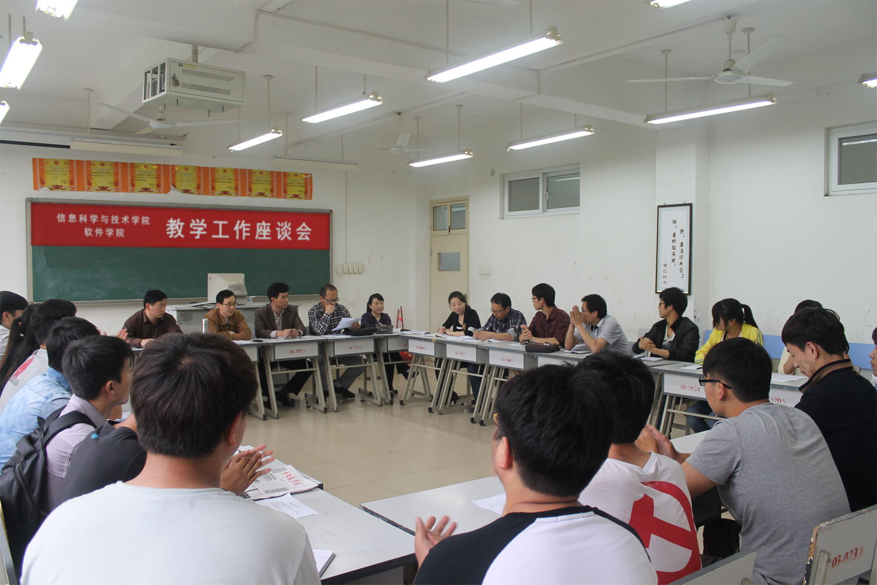 5月7日下午,我院在5305教室召开了2012-2013学年第二学期教学工作座谈会,会议旨在了解本学期我院教学工作和学生学习情况。会议在姜平书记和胡明生院长的安排下,由副院长肖汉教授主持,各系主任、教科办成员、辅导员以及各班班长参加了此次座谈会。