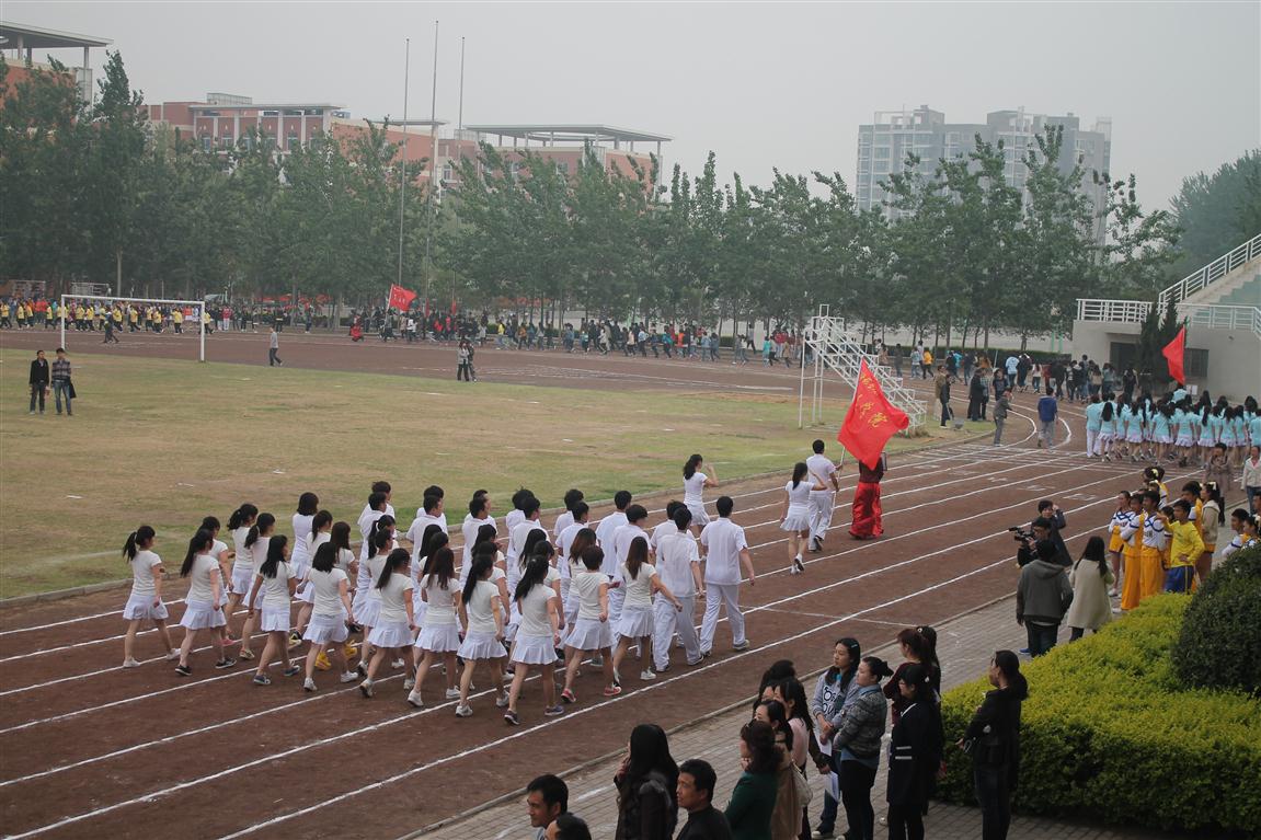 开幕式正式开始,首先在田径场上迎来国旗、校旗。接着是伴着响亮的口号,以整齐的步伐走过主席台前的各个院系的方块队。我院方块阵步伐铿锵有力,口号嘹亮整齐,摆出“IT”、“键盘”的标志,赢得在场观众的阵阵掌声。之后,赵校长发表讲话。最后,于书记宣布郑州师范学院“华光”体育活动暨第三届田径运动会正式开始。