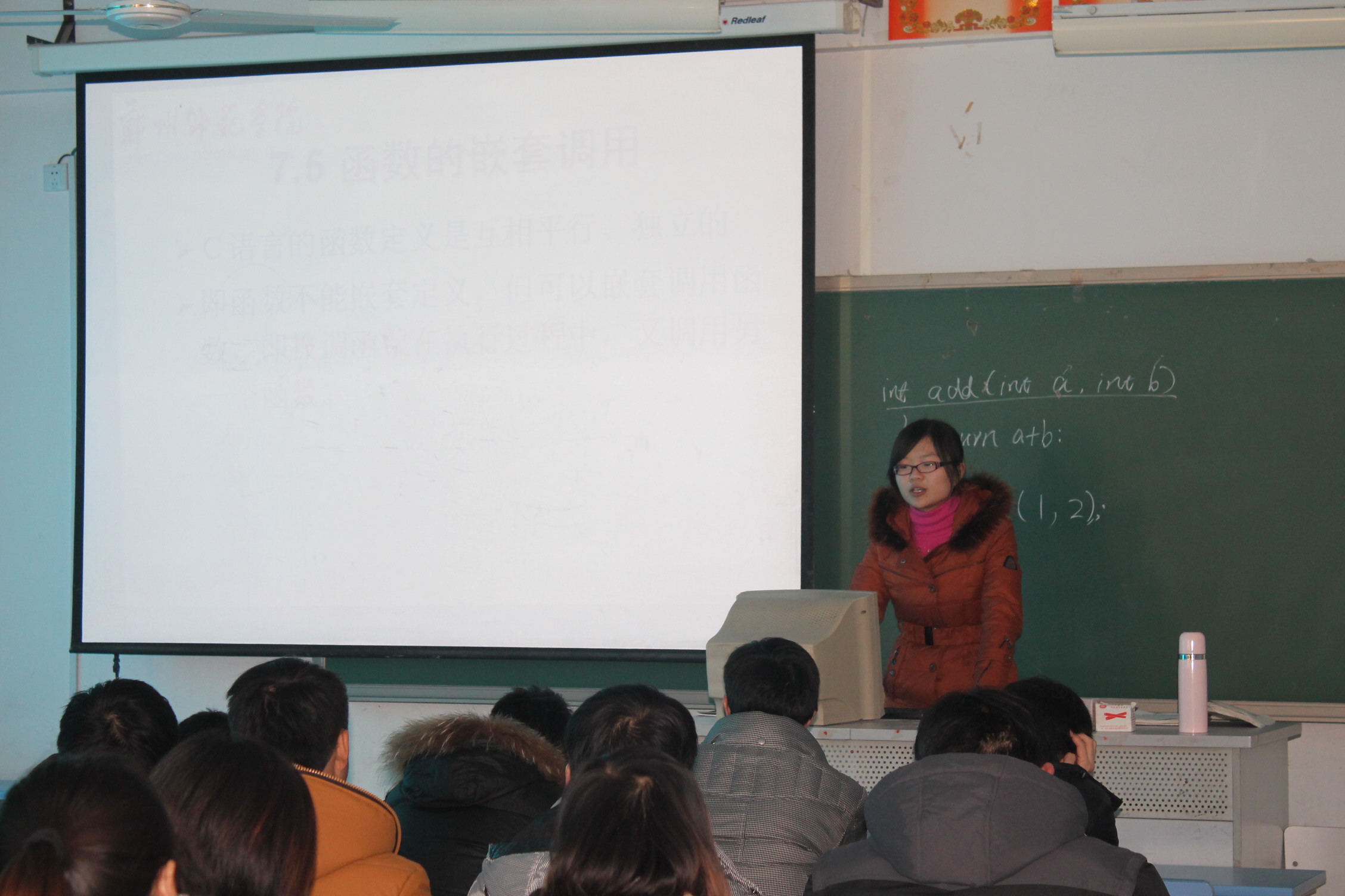 12月24日下午14:10分雷利利老师的C语言程序设计课,为持续一周的决赛拉开了序幕。我院教学工作委员会主任姜平、胡明生,副主任古明惠、肖汉及全体成员参与了本次听课评比。