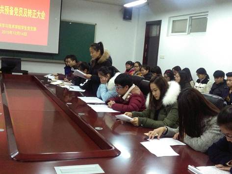 此次大会主要围绕“接收预备党员”、“预备党员转正”两大主题进行讨论并决议发展对象及预备党员的入党问题。大会开始,由党总支副书记古明惠就此次大会作出要求,她强调此次能够转正的预备党员同志要按照党章严格要求自己,以身作则,不能按期转正的预备党员要虚心接受党支部大会意见,克服缺点,继续努力。接着由预备党员宣读入党志愿书并表明自己的入党动机,简明扼要地汇报了预备期间个人在思想态度、生活、学习、工作等方面的突出表现,表达了他们的入党动机和加入中国共产党的强烈愿望,并由他们对应的入党介绍人对其学习、工作、实践活动等方面进行评价。随后拥有表决权的党员对接受党员与预备党员进行投票表决。经与会正式党员的一致表决,我院15名预备党员顺利通过党组织审核,成为正式党员,同时也接收了30名预备党员。最后全体成员起立宣读入党誓词,大会圆满落幕。