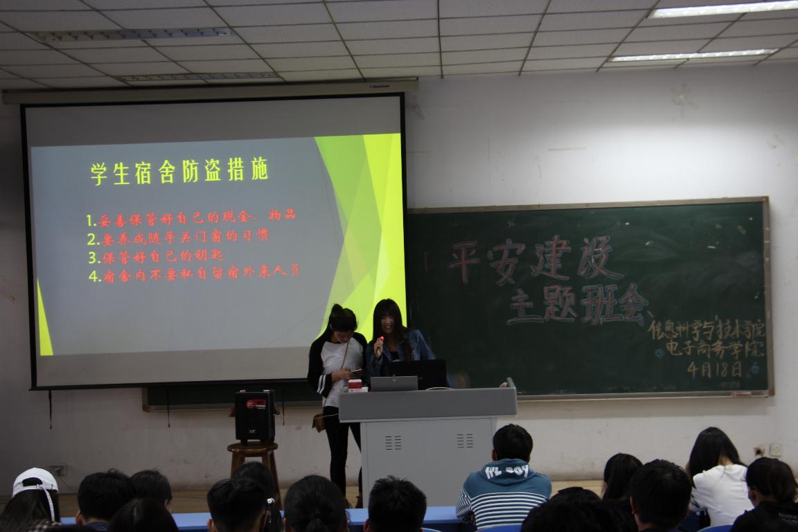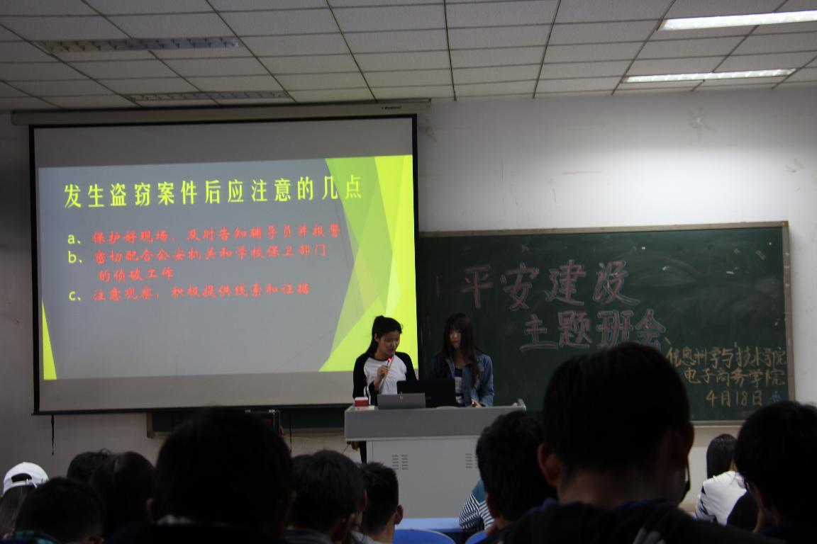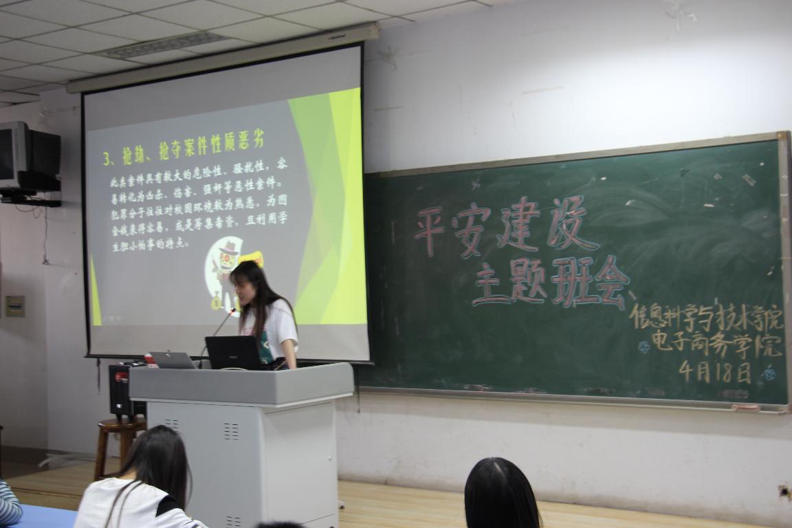 2017年4月18日,信息科学与技术学院平安建设主题班会在一阶三顺利举行,出席此次班会的观众有16级各班的同学。