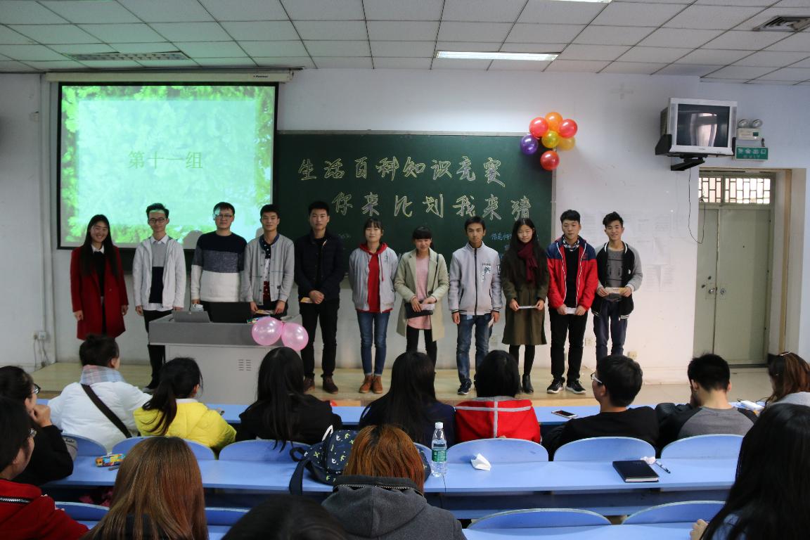 下午2:30,活动正式开始。活动开始前,首先进行的是生活百科知识竞赛,竞赛分必答题和抢答题两个环节,同学们劲头十足的参与答题并取得了不错的成绩。接着进行了你来比划我来猜游戏,在限定的两分钟时间内,参赛选手两两一组,一人比划,一人来猜,场面紧张而愉悦,每选手答对题目时,现场评委及观众就报以热烈的掌声祝贺。最后,现场公平公正公开的评选出了竞赛和游戏的奖项,由主席郑浩然,副主席陈正一,生活部部长孙寅婷给获奖者现场颁发奖品并拍照留念。活动结束后,同学们有序退场。